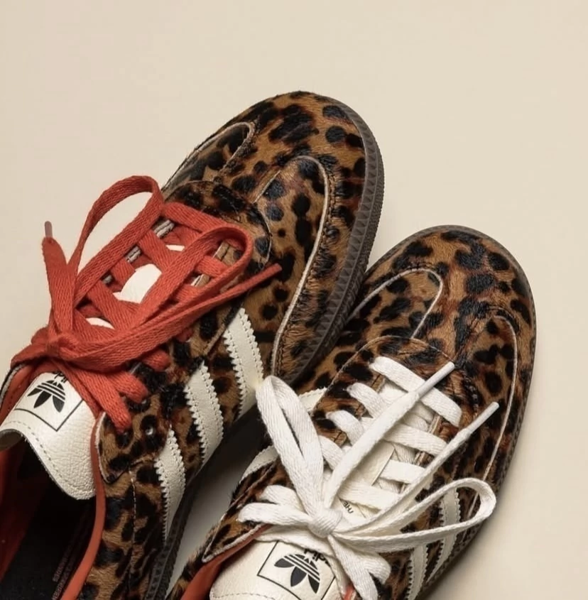 Mantendo a essência do design original, a versão atualizada mistura o charme retrô com uma abordagem moderna. Os detalhes em vermelho contrastam com o cabedal predominantemente preto, enquanto o solado em branco creme traz equilíbrio e sofisticação ao visual. A estampa animal é a grande protagonista, ideal para quem busca um sneaker que combine personalidade e versatilidade.