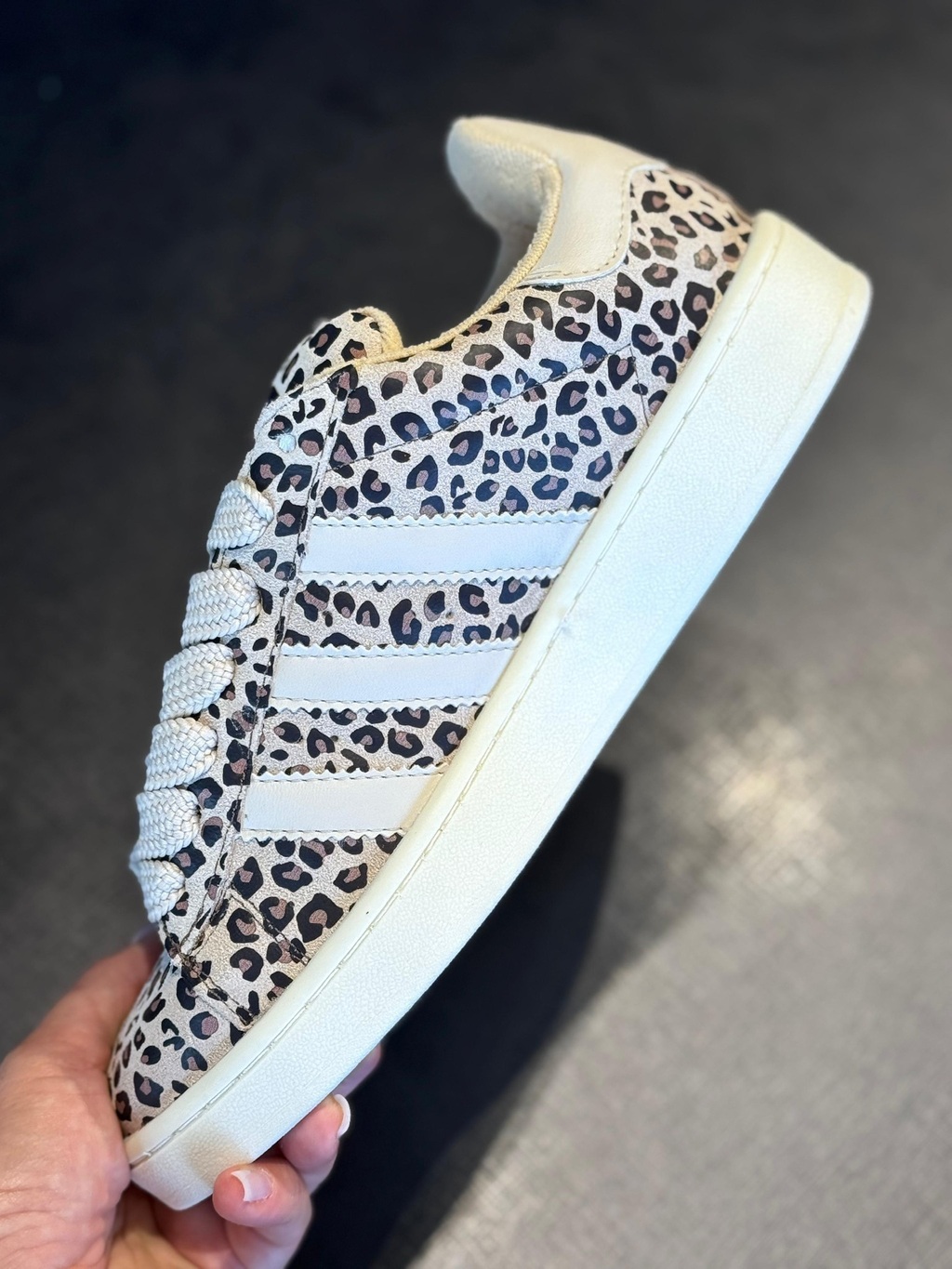 O Adidas Campus Oncinha é inspirado na era do skate dos anos 2000 e é uma celebração da cultura da época. Forma normal.