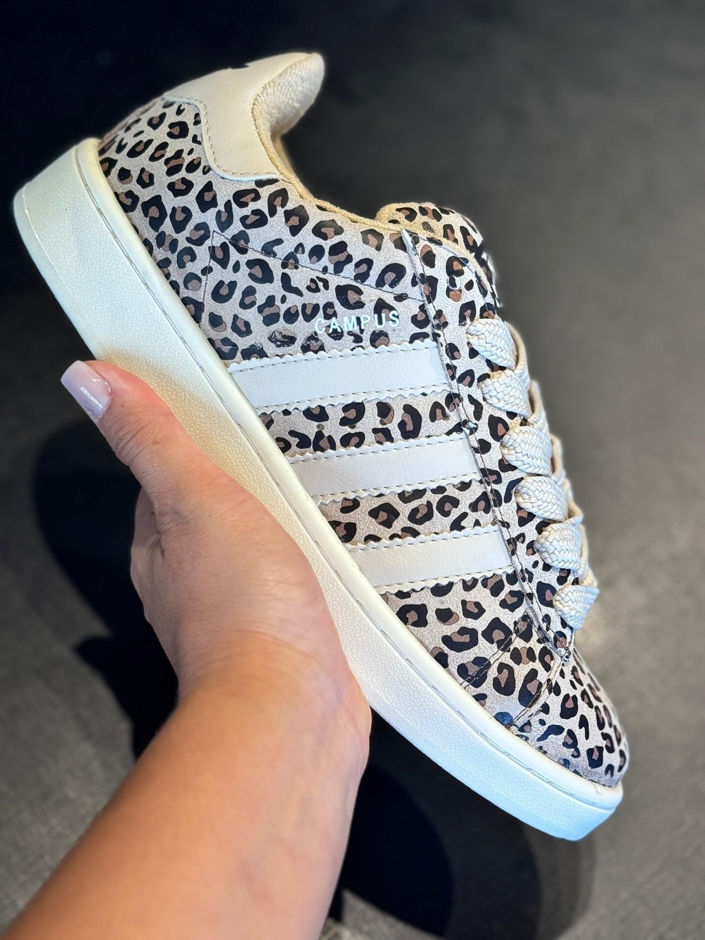 O Adidas Campus Oncinha é um tênis de estilo clássico e moderno, com detalhes em estampa de onça nas três listras da Adidas. É feito de couro legítimo e possui uma entressola com amortecimento leve.